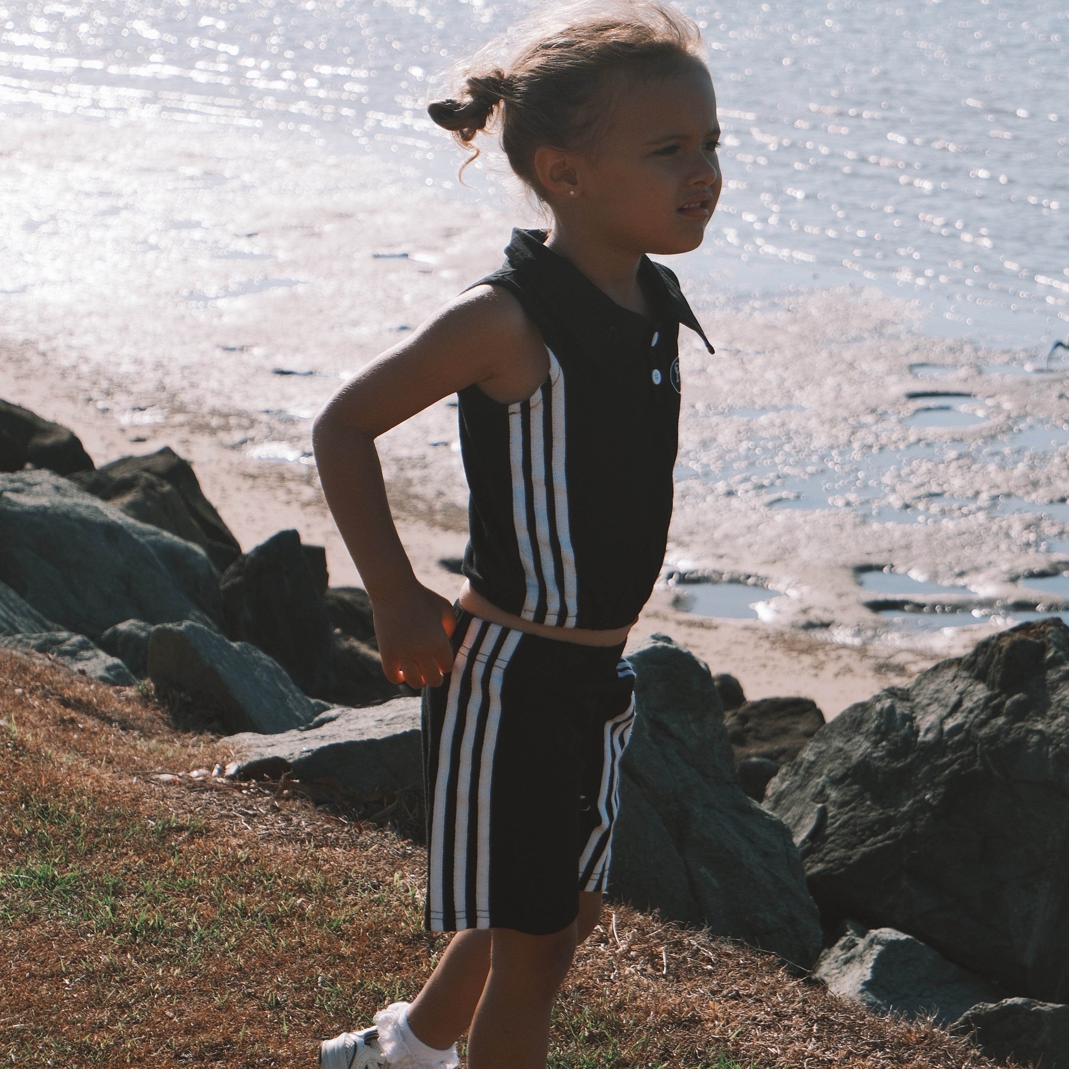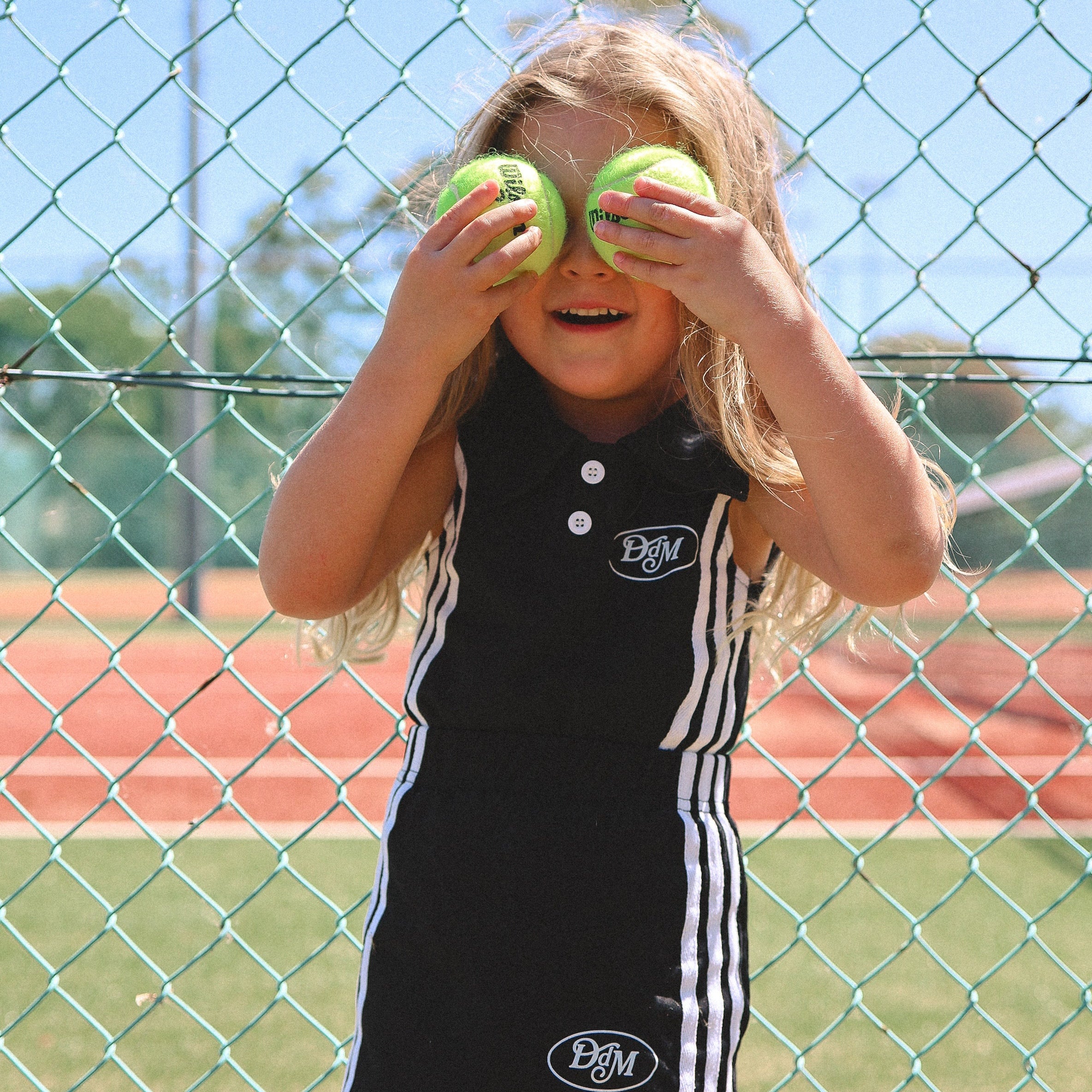 Our Court Set brings all the 90s tennis club energy — a sleeveless top paired with a matching skirt made for twirls, chaos, and court-side cuteness.
