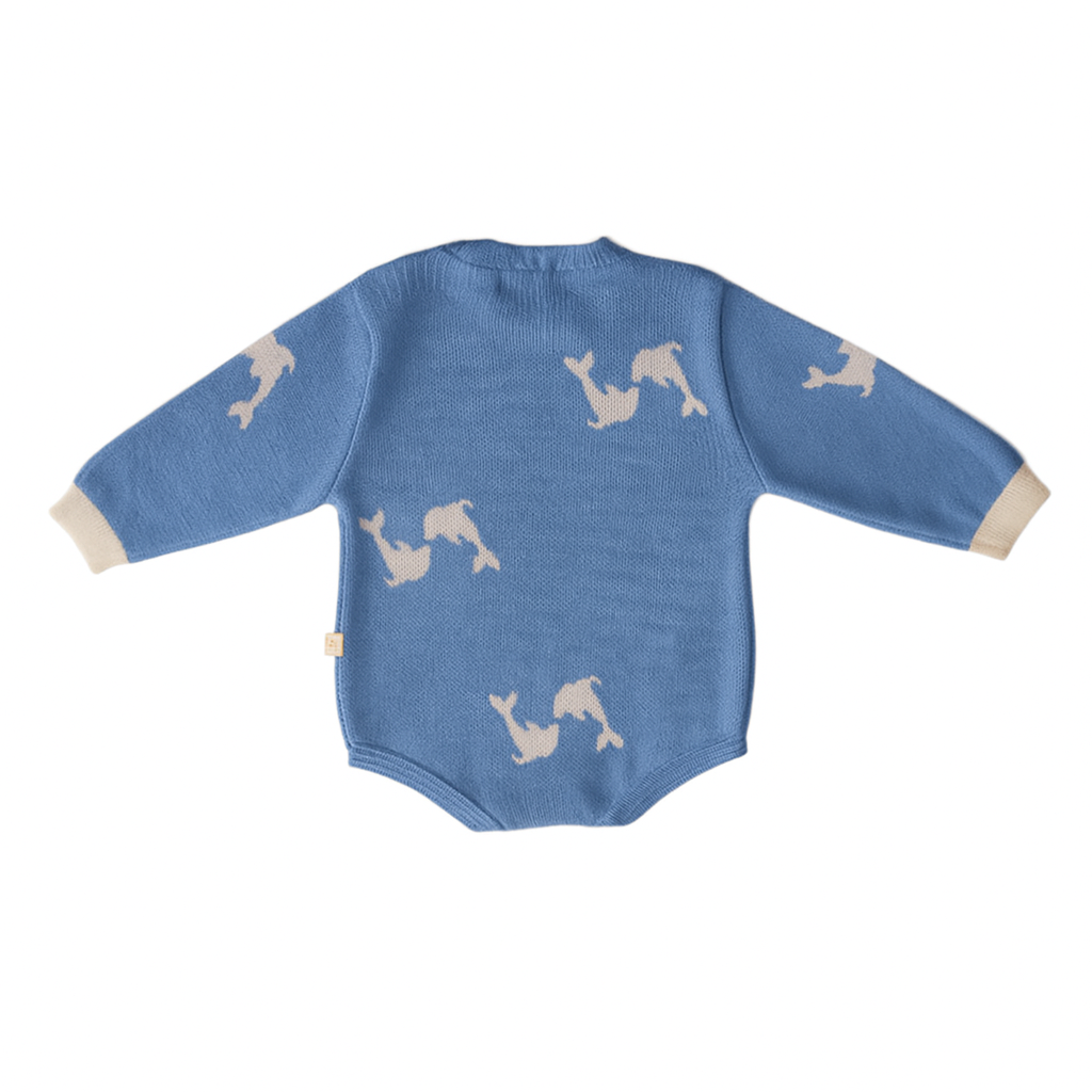 Our Long Sleeve Romper – Just Keep Swimming is a splash of nostalgia β€” soft, breathable, and covered in our playful dolphin jacquard knit. Easy to wear, easy to love, and made for minis who never stop moving.