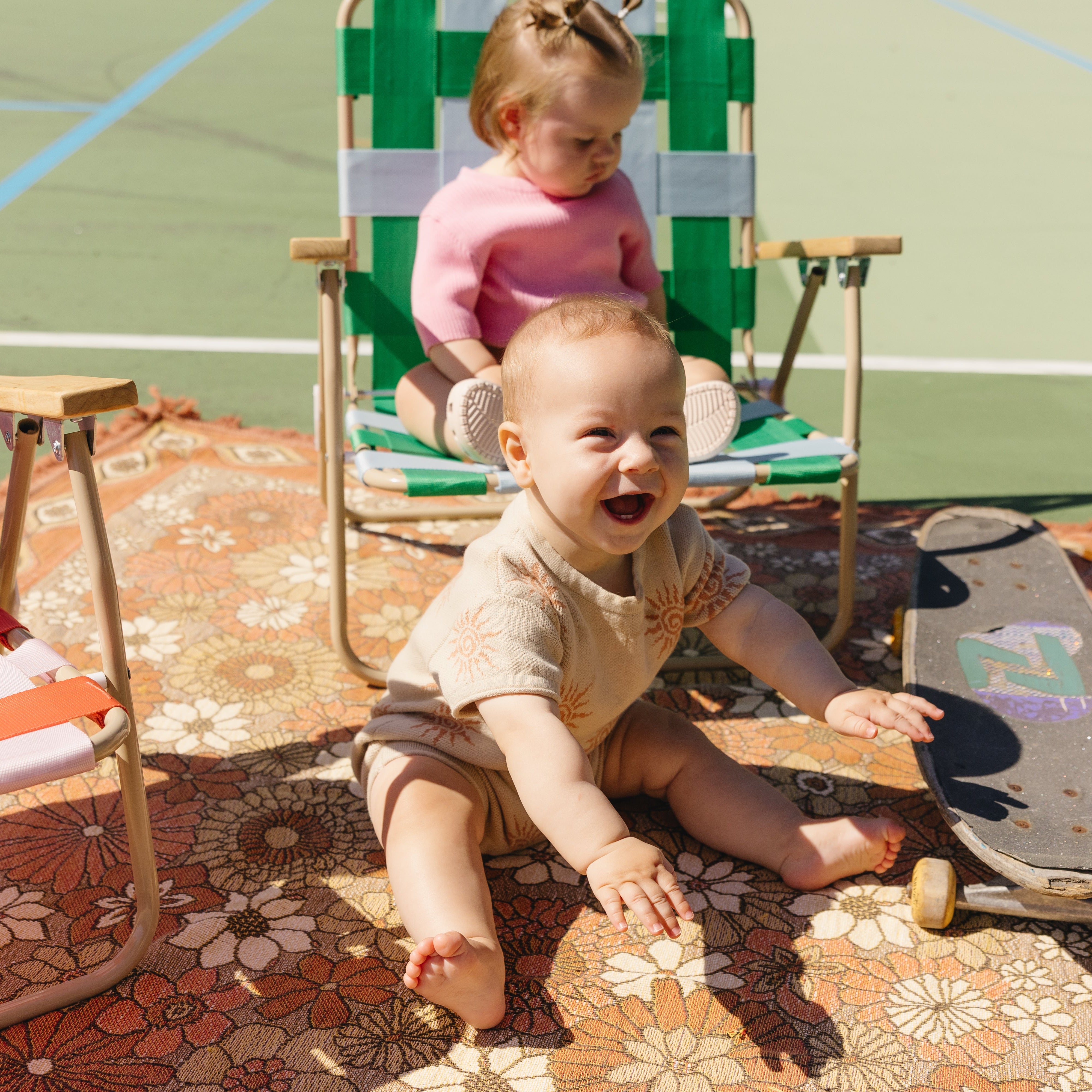 Our Sunday Arvo Romper Tee brings the golden glow of weekend play to everyday wear. Comfy, breathable, and made for minis who never stop moving.